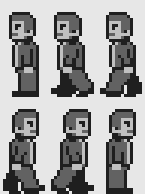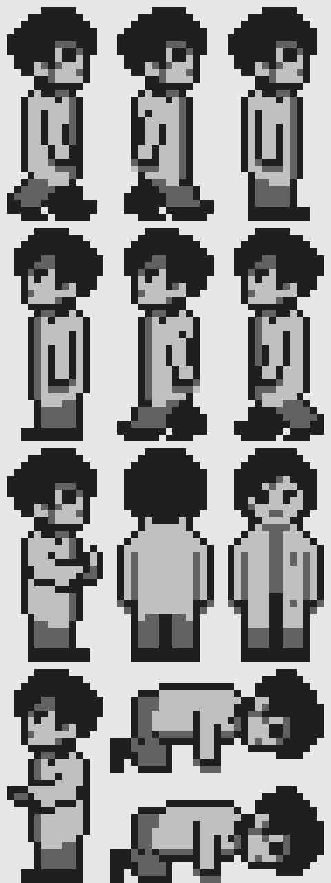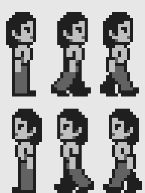 Here are the sprites I currently have. I might change them later on or I might keep them. I’m not that sure yet. The more homebrew games I play the better I think I should make these sprites. Any feedback is always welcome. The next post might be about some more cutscenes that I’ve been drawing or about some background art of Dr. Serizawa’s lab. It kind of depends if I can get Serizawa’s lab where I want it. I have also been working on some dialogue scenes in the engine, so that might be shown off as well.